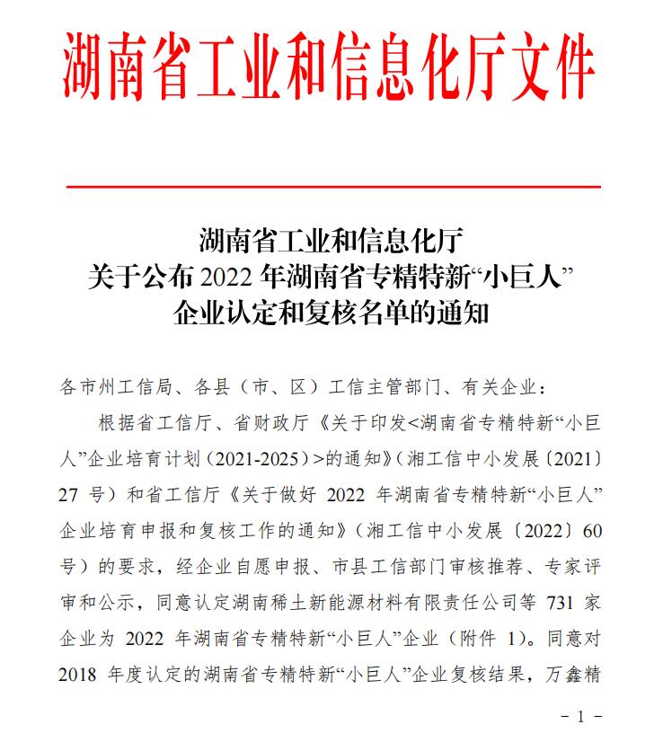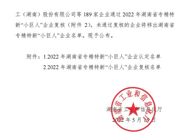 2022年5月5日湖南省工業(yè)和信息化廳公布確定湘潭華進(jìn)重裝有限公司等731家企業(yè)為2022年湖南省專精特新“小巨人”企業(yè)名單的通知。根據(jù)省工信廳、省財(cái)政廳《關(guān)于印發(fā)<湖南省專精特新“小巨人”企業(yè)培育計(jì)劃(2021-2025)>的通知》(湘工信中小發(fā)展〔2021〕27號(hào))和省工信廳《關(guān)于做好2022年湖南省專精特新“小巨人”企業(yè)培育申報(bào)和復(fù)核工作的通知》(湘工信中小發(fā)展〔2022〕60號(hào))的要求,經(jīng)企業(yè)在線申報(bào)、市縣工信部門審核推薦、專家評(píng)審的流程來認(rèn)定湖南省專精特新“小巨人”企業(yè)。